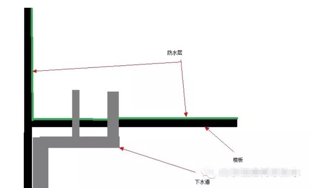 平面衛(wèi)生間和陽臺(tái)、廚房的結(jié)構(gòu)基本相似,可以看到主橫管是在樓板下面的。分別沉箱式衛(wèi)生間和平面衛(wèi)生間的防水施工方式大有不同。只刷一層就可以了,也不用做二次排水口。